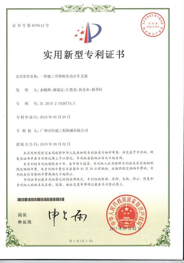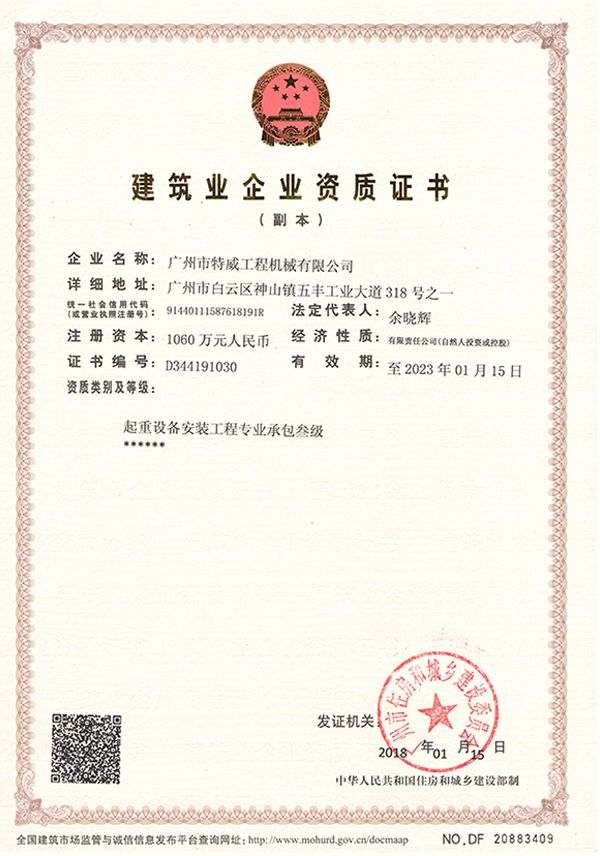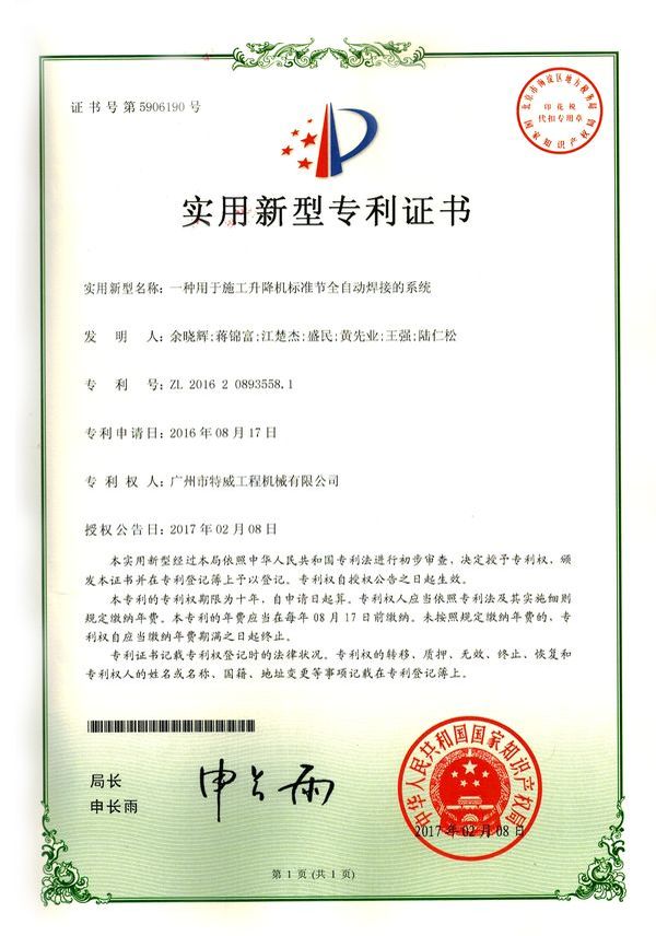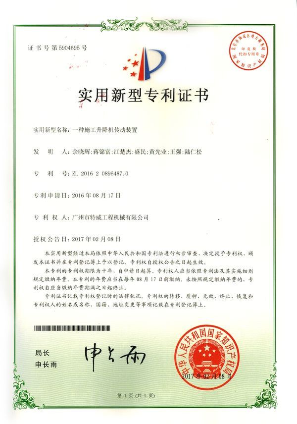 廣州市特威工程機械有限公司地處廣州市白云區(qū)神山鎮(zhèn),廣清高速神山出口附近,是一家施工升降機的專業(yè)生產廠家。公司成立于2011年,占地100000多平方米,注冊資金1060萬元,現有員工300余人其中工程技術人員33人,高級技術人員52人。